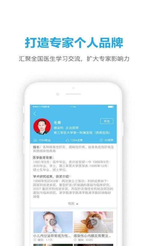 5. 专家通过平台可分享自己的医疗视频,让更多人学习,扩大自己的影响力。
