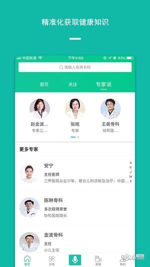 app是一款医疗服务软件,app由专业医学团队研发,拥有数百家三甲医院的专业医生团队,内容涵盖:疾病自查、住院教育、大咖讲堂、综“医”真人秀、教你看报告、家庭用药助手、医院查询,同时用户通过app还可以学习到健康知识讲座视频,走向健康拒绝疾病!