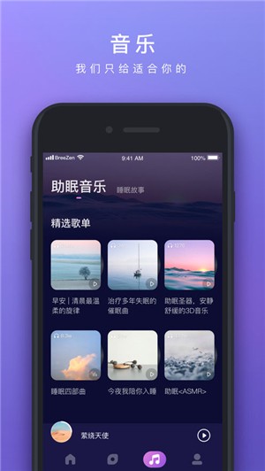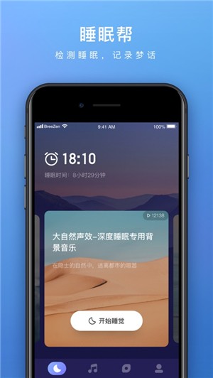 软件会对您的睡眠进行管理与监测,为您免费提供最适合的助眠音乐、睡前故事与冥想练习,