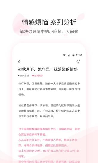 app,专为丽人们提供的健康心理服务软件。在app可把你分析恋爱、婚姻情感问题,分享案例,以及随时随地学习干货等。