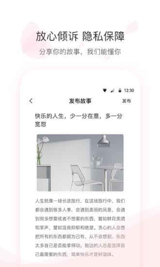app致力于帮助女性更好的解决在情感、工作学习,以及生活中遇到的挫折及困惑,让灰暗的时光变得温暖,在挫折中发现更好的自己,成长为一个更爱自己,更有幸福感的人!