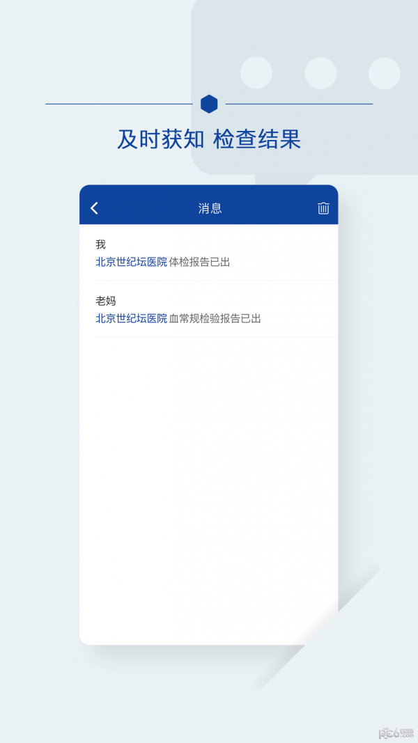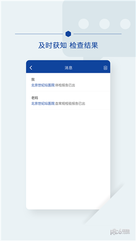 ,随时随地查看您在北京世纪坛医院的病历、处方和检验检查报告;您在医院就诊后,将自动帮您获取就诊所包含的病历、处方和检查报告,及时同步到您的手机中并智能化归档,方便回顾与查阅。