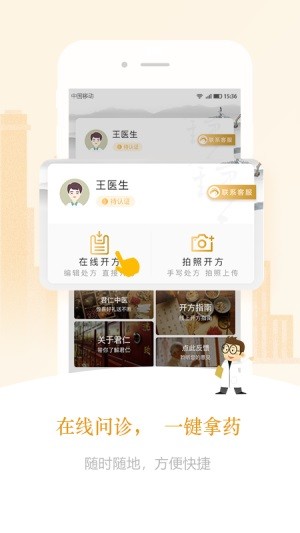 患者可以通过APP/微信给自己或者家人在线进行初复诊,开方购药等直通便捷的中医服务。