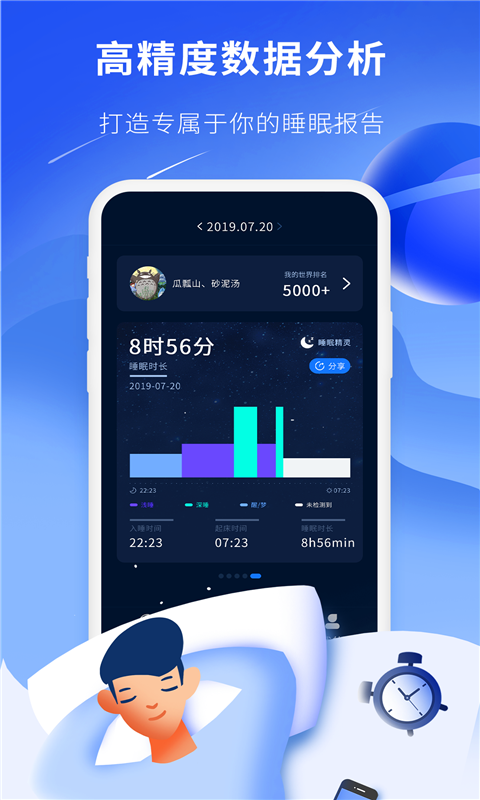 2、不需要其他的装备,只要联网并将手机放置在手边,第二天一早就会自动生成你休息质量报告;