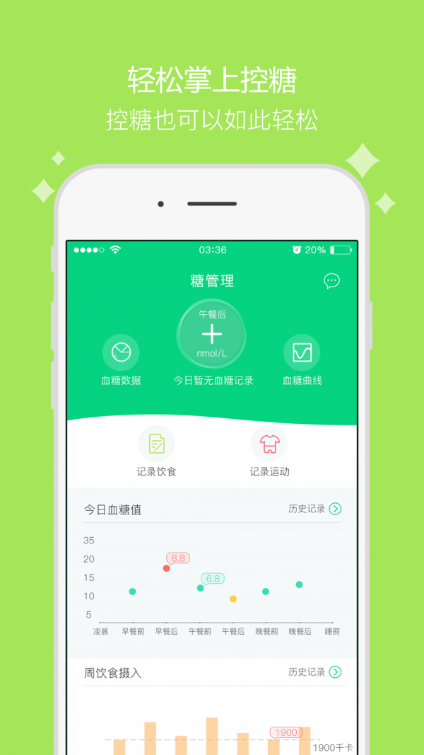 根据糖友每日所需的总热量以及身体状况和个人喜好,为糖友搭配健康又美味的控糖餐。记录每天每时每刻的血糖数值,并且为糖友保存历史血糖数据,以便糖友轻松掌控血糖数值做到变化趋势掌上控制。