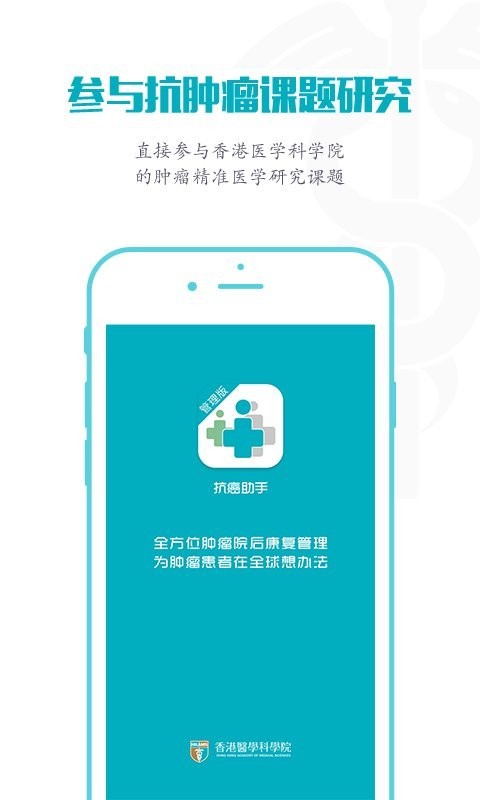 抗癌助手是香港医学科学院“肿瘤医养一体化国际平台”的入口,所有肿瘤医生均可通过这一入口,随时随地对出院病人进行管理,合适时间获取有价值的临床资料。