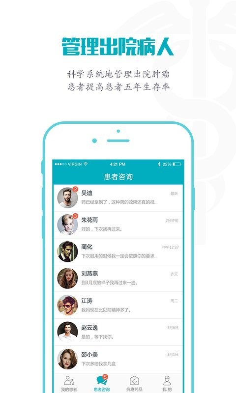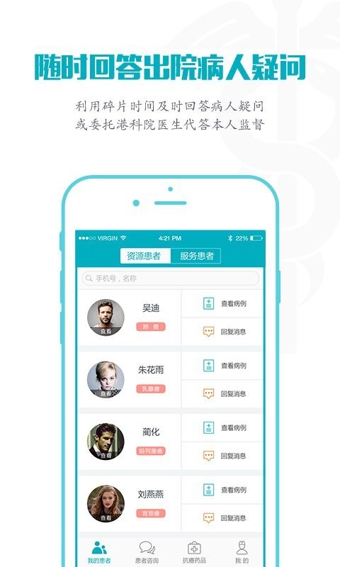 抗癌助手医生版app是一款健康医疗应用,软件专为医生设计,方便医生管理患者,解答患者医疗咨询问题,为患者身体健康提供专业的医疗服务。