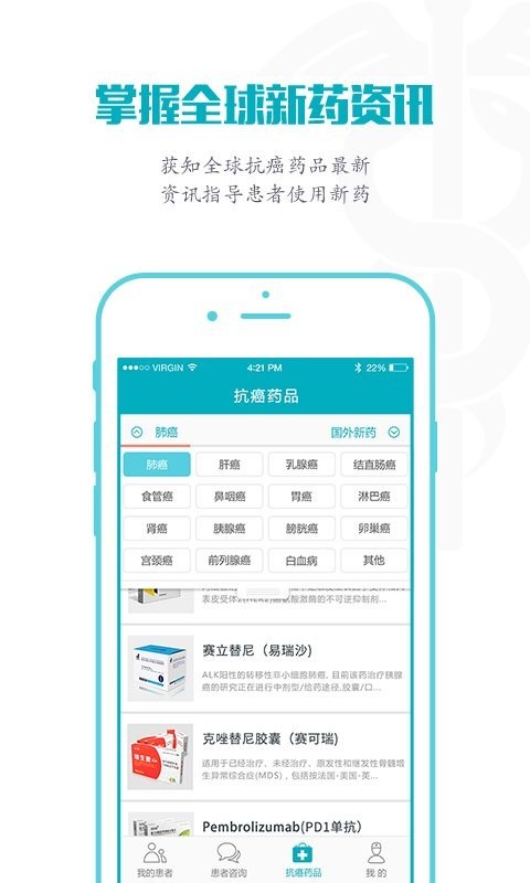 同时抗癌助手经常发布全球抗癌药品资讯,供医生参考。