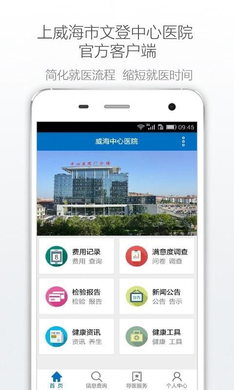 威海市中心医院app是威海市文登中心医院官方推出的手机应用软件,旨在医院现有服务基础上简化预流程,减少就医等候时间,方便患者就医,改善患者就医体验。