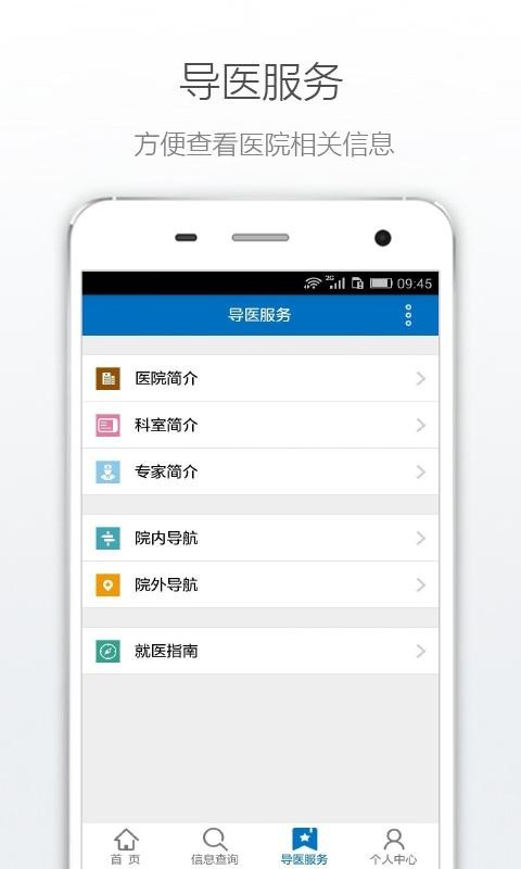 【导医服务】方便患者查看医院地址、联系电话和官网地址,并提供医院内外导航,给患者,尤其是外地患者前来医院就诊提供方便。