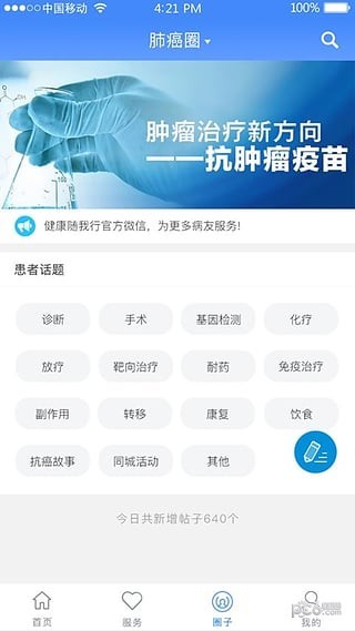 app是一款健康医疗应用,是个面向肿瘤患者及其家属打造的医疗健康管理系统。在app中你可快捷获取医院信息,了解药价,以及享受免费评估服务等。