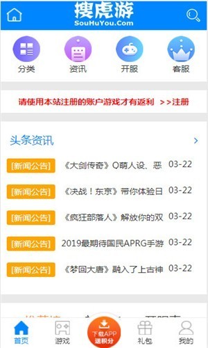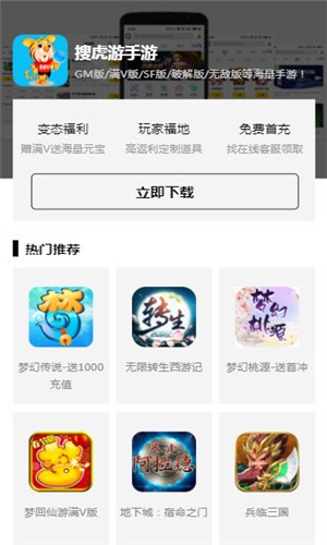 搜虎游游戏盒子app拥有众多热门好玩的手游公益服、GM权限手游,最全的热门礼包,