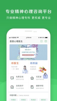“”是专业精神心理健康服务平台,汇聚全国知名精神心理科专家,充分利用移动互联网,整合优质医疗资源,为用户提供免费咨询、在线预约医生、免费自我测评、健康资讯等精神心理健康服务。用户可以通过图文、电话、视频等方式,与精神心理科专家进行一对一私密交流,真正实现了不出家门就能问诊专家!