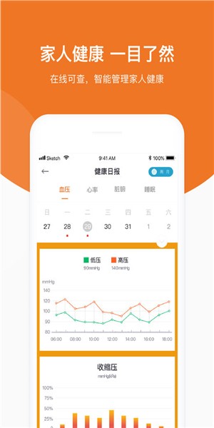 【健康监测】实时监控心率、血压、定期监测心电图的变化状况
