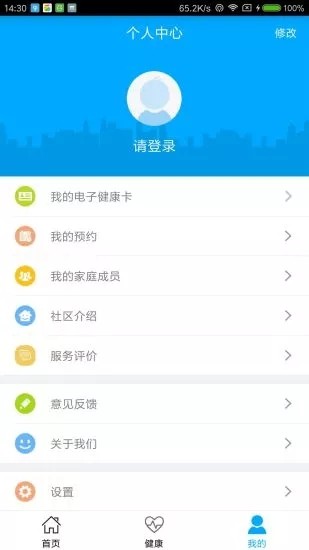 3、健康档案:查询区域范围内医院的健康档案,并提供血压、血糖、身高体重添加记录功能;