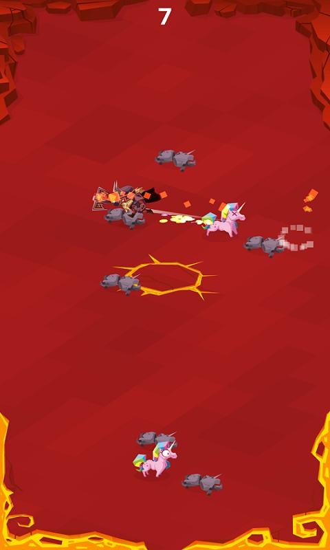 屏幕上会随机出现独角兽,过一段时间会刺向玩家的角色,