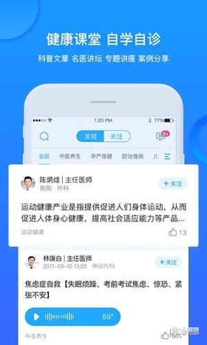 健康课堂,无事的时候可以在线跟着专业的医生学习健康常识;