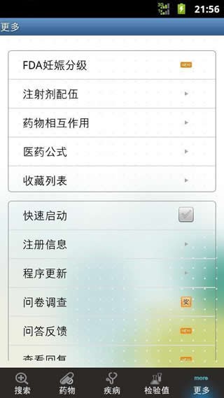 提供临床常用检验值信息,强调检验值的临床意义,药物对检验值的影响等内容。 提供临床常用公式的计算功能。