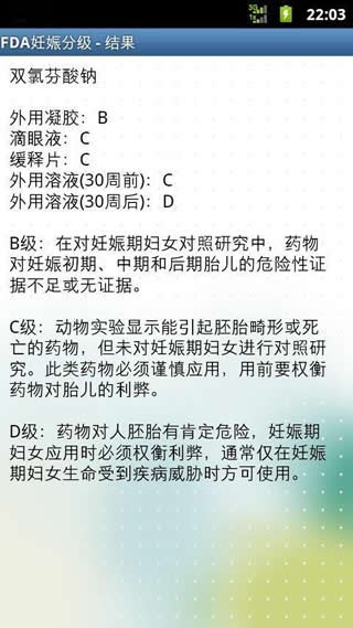 提供FDA妊娠分级的查询功能通过药品首字母简拼、商品名、通用名、其他名称能方便查询药物信息。