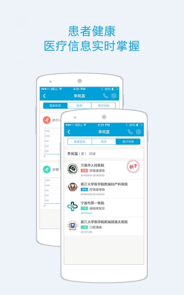 -----患者医疗健康记录:可实时查看并了解基于患者授权的患者在蓝牛医护开放医院的门诊、住院、体检就诊记录,包括检验检查报告、诊断、处方等信息,以及患者授权的蓝牛健康端个人健康信息。