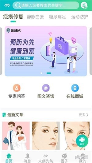 app秉承“预防为先,健康到家”的健康理念,通过整合相关专家资源服务、医疗数据管理分析、打通线上线下渠道,提供日常家庭健康防护知识,既能满足日常家庭伤口防护与营养支持又可以针对不同人群需求做好私人健康定制与院后康复理疗。