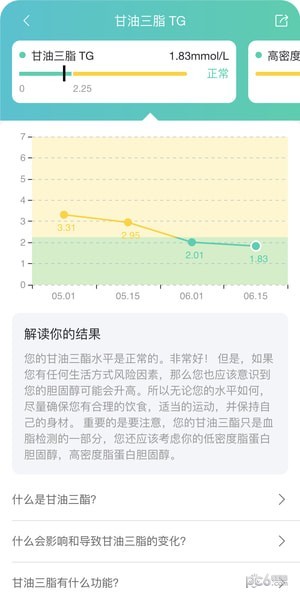 - 详细的解读+可执行的建议:app的报告解读分析了您的检测结果意味着什么,以及它们对您的健康可能会有哪些影响。app还提供了如何提高您的健康水平的可执行的建议;
