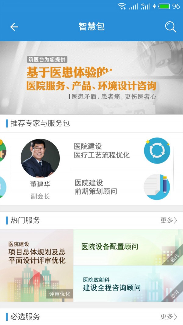 筑医台用互联网的方式联接、聚合,形成新型的智慧,推进智慧交易透明化并更加受到重视,组合了全国医院建设顶级专家来帮你做方案把关和未来预判,用专家的经验和知识体系,帮助需求方随时随地找到细分领域里面的专家,解决建医院遇到的问题。