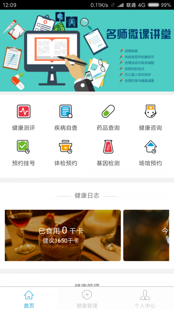 提供健康测评、疾病自查、药品信息查询、健康咨询、体检预约、预约挂号、基因检测报告查看和运动场馆预约等服务。