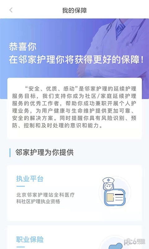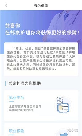 app是一款护理共享软件,app将与您携手共筑护理人员护理事业的春天,我们也为所有注册邻家护理共享平台且提供护理服务的全体护理同仁提供全方位的保障!