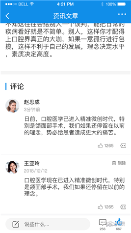 app是一款为口腔医生提供学习交流资讯的软件,app帮助牙医提升自己的专业知识和技能,建立口腔圈内的良性个人品牌和人脉,是牙医们的精神家园。