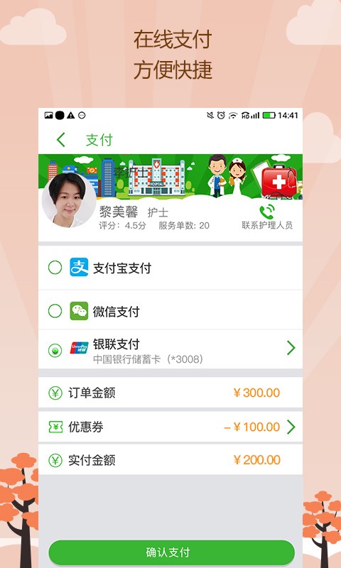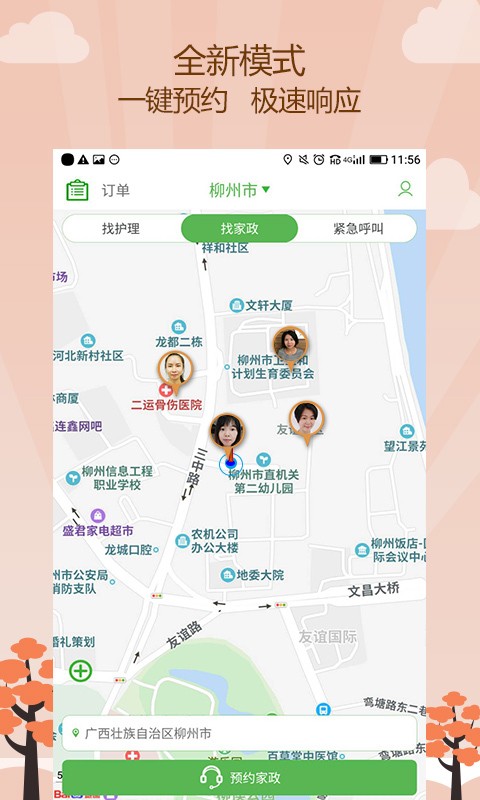 医养服务家专注养老护理服务。医养服务家APP运用互联网+护理+养老的模式,实现供需双方线上发布、在线撮合预约、在线订单形成、线下服务、在线支付、在线评价等功能,提供医院陪诊、上门护理(居家陪护、疼痛护理、伤口护理、管道护理、中医理疗、临终关怀等)、紧急救护等数十项专业护理服务。用户根据自身需求可实现在线下单,即时发布,迅速调动周边医护资源上门或到现场提供及时服务,医养服务家,服务到您家!