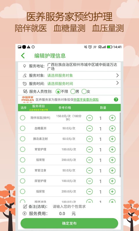 医养服务家app是一款专注养老护理服务的软件平台。医养服务家app用户根据自身需求可实现在线下单,即时发布,迅速调动周边医护资源上门或到现场提供及时服务。