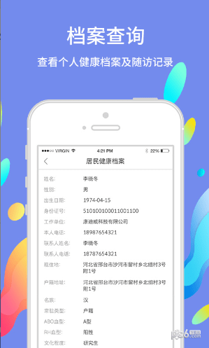 4. 健康档案:居民可在巴蜀快医居民端APP查看个人(家庭)健康档案数据。