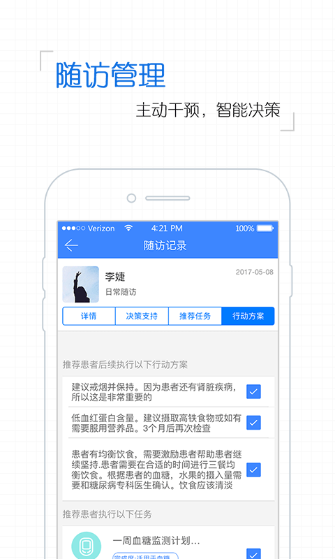 同时集知识,图文咨询、随访管理、临床决策等一系列专业、连续、个性化的患者管理服务,有效减轻医护人员工作量。