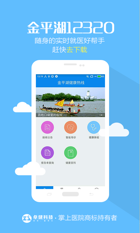 “金平湖12320”是以移动互联网、云计算、物联网、大数据等特点“智慧化”信息革命。“金平湖12320”旨在医院现有服务基础上,通过查询报告单、医院列表、智能导诊、医院导航、健康百科、健康体检等多种简化患者就医流程功能,减少就医等候时间,改善患者就医体验,提高医疗服务质量。
