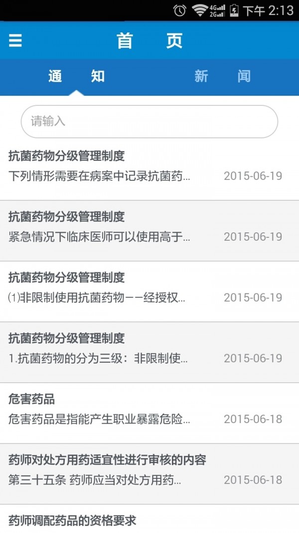 【新闻通知】医院或科室的新闻、药品通知、病例讨论,医护人员可进行查看、收藏、评论操作。