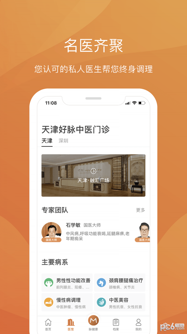 3、中医特色:以中医学科带头人、国务院特殊津贴专家为代表的国医大师和省级名医作为诊疗专家,用道地中药、革新方剂、全息理疗调理健康。