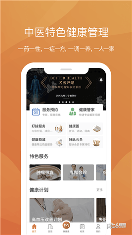 1、个性化健康管理:以中医名家制订个性化健康方案,您认可的私人医生帮你终身调理,医师级的健康管家贴心为您打理健康事务。