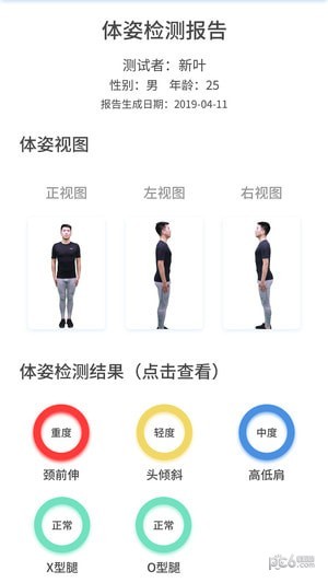 三张照片即可检测头倾斜、高低肩、X型腿、O型腿等异常体姿;