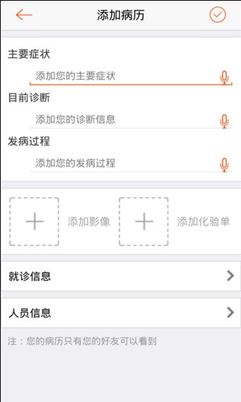 2、让患者找医生更容易、看病更简单 :APP中的云病历功能将对患者形成持续真实的医疗历史记录,形成完整的个人健康医疗信息;