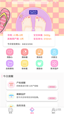 1:提供孕妇孕期母婴健康自测(胎心、血压、血糖、胎监等);