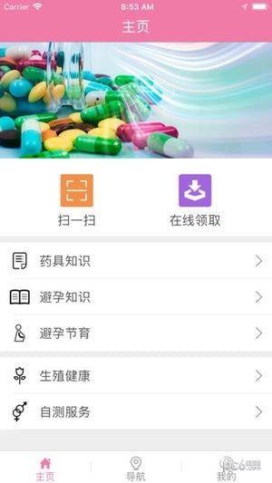 app是一款健康生活服务软件,app为用户提供避孕知识以及孕育知识,科学生活。同时用户可通过app导航至附近领取点免费领取计生药具,还可以在线下单享受同城配送上门服务。