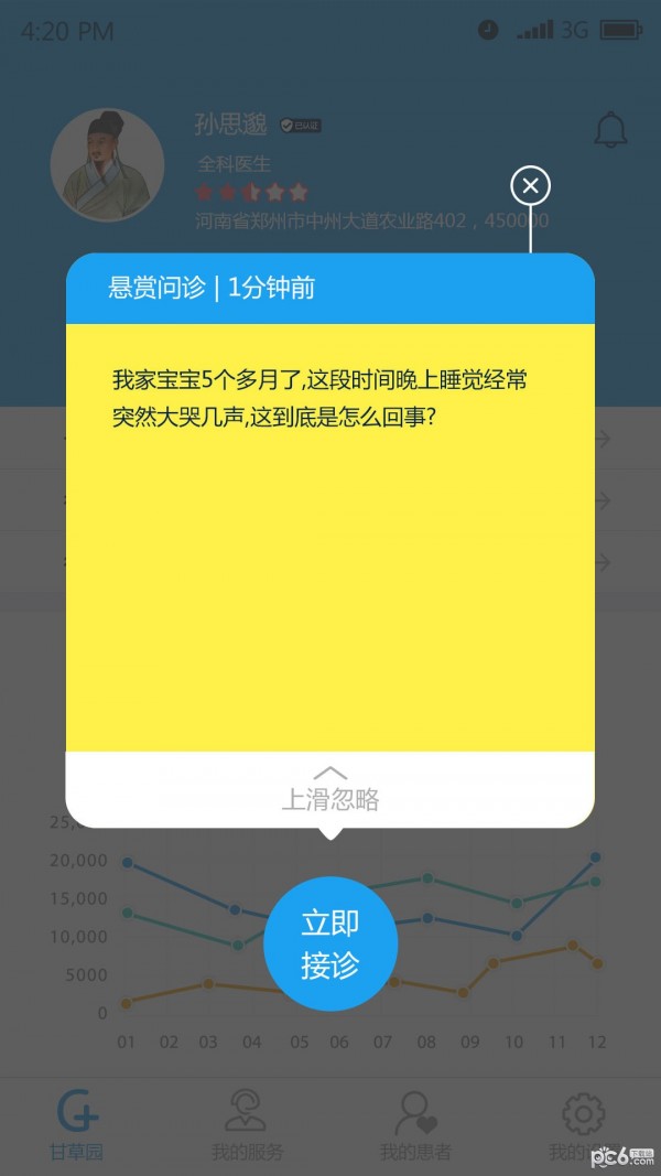 您不但能找到千万患者,更重要的是能与同行交流与专业沟通学习,不但增加了收入,还能营销自我品牌,让您的医术得到更好的见证和发光。甘草园诊所使您不在坐等机会,可以增加您的积极性与责任心,让您无时无刻可以救死扶伤,保证患者的健康。甘草园提供服务包括悬赏问诊、预约医生、紧急救助、护理、康复、慢病、中医等等专业服务和功能,让您的医术更加有发挥的作用。甘草园是提供私人医生、家庭医生应用,患者会请求您成为其私人医生,进行专业的健康服务和咨询,这是患者的信任和医生的责任发挥。注意:医生下载后,需要注册,提供相关资质和详细填写医生资料,以便患者查阅和对您有所了解,注册并通过后您可以设置预约门诊时间及接收那些咨询。流程:注册->填写医生资料->提交医生资质->进入应用,等待认证通过,认证未通过不能向患者提供服务。