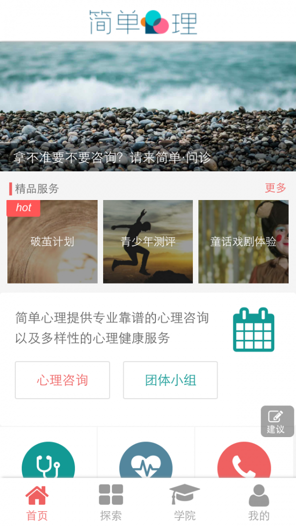 简单心理app是专为心理医疗服务打造的应用,提供各种优质的心理咨询师在线交流,为您的心理问题推荐最合适的心理咨询师,更有电话咨询服务,是您心理咨询的好帮手。