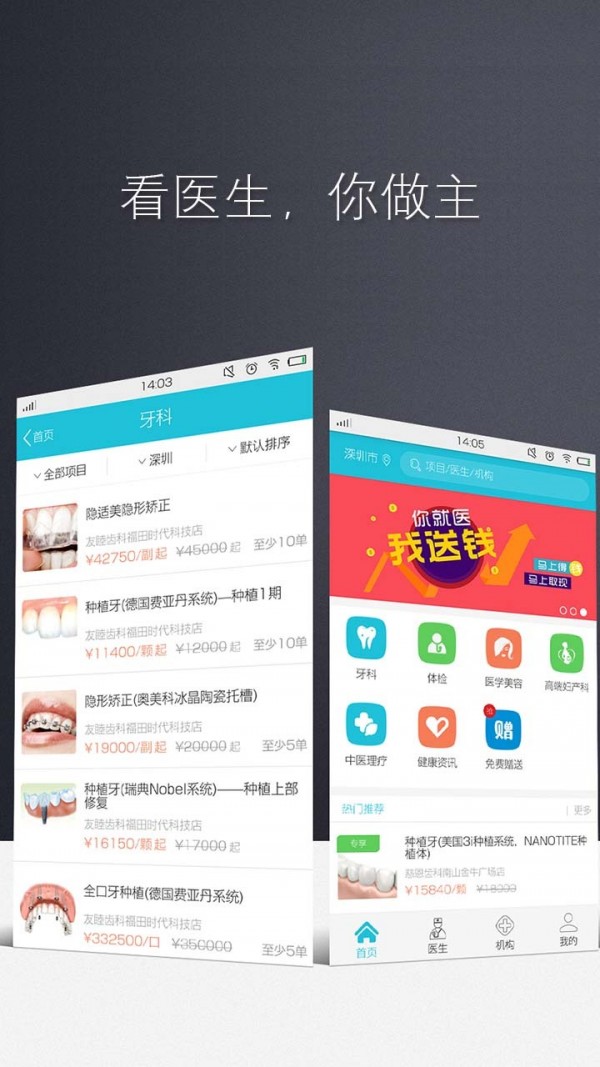 悠康医生围绕用户打造五大服务板块:牙科、体检、高端妇产科、医学美容、中医理疗。我们从成千上万的医疗机构中遴选出优质的合作伙伴,这些机构和医生愿意为用户提供高品质的服务。
