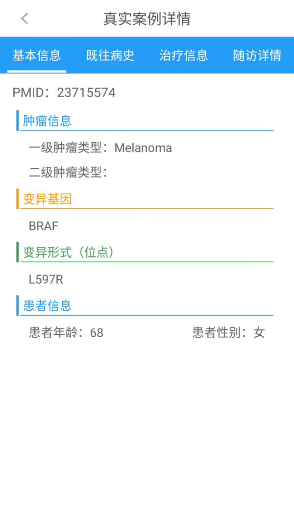 可方便肿瘤医生对于基因变异相关的临床意义进行多元的查询,同时参考基因变异患者使用相关精准治疗的临床案例和信息,为癌症患者个体化治疗提供切实可靠和全面的临床证据。
