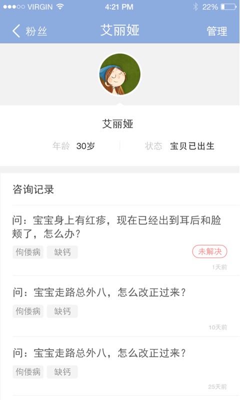 为医生提供与妈妈们在线交流的途径,向妈妈们普及怀孕和育儿健康知识。同时医生可使用该应用跟踪随访门诊患者,帮助沉淀沟通顺畅、依从性好的患者群。