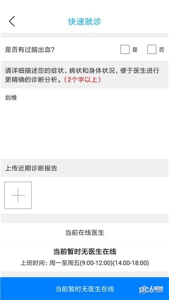 【快速就诊】用户可通过描述症状和上传图片的方式向平台在线医生做健康咨询、在线诊疗。(支持图文/语音/视频方式)