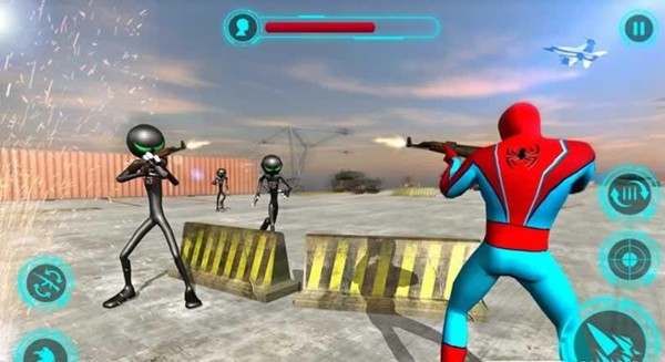 1、超级英雄蜘蛛人和火柴人将开始展开射击大对抗;