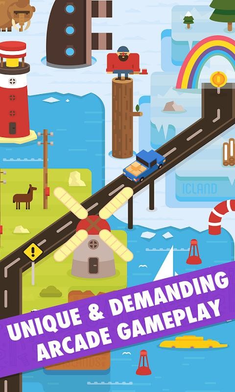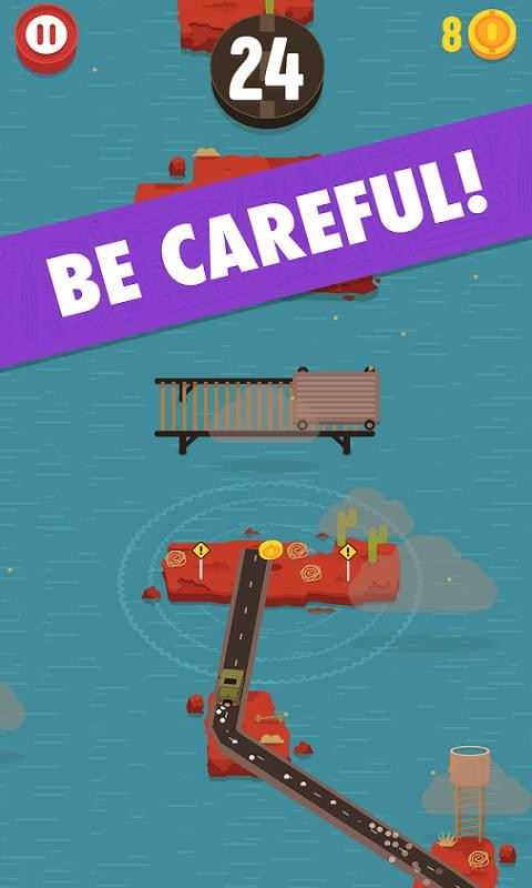 游戏时我们的车辆会沿道路自动直线行驶,玩家要在道路转到可以连接两座小岛的恰当位置时点击手指,搭建通路连接岛屿避免车辆坠毁。据称本作一共为我们带来了八大主题以及风格独特的奖励场景,更有超过30种车辆待你解锁,感兴趣的玩家不妨一试。
